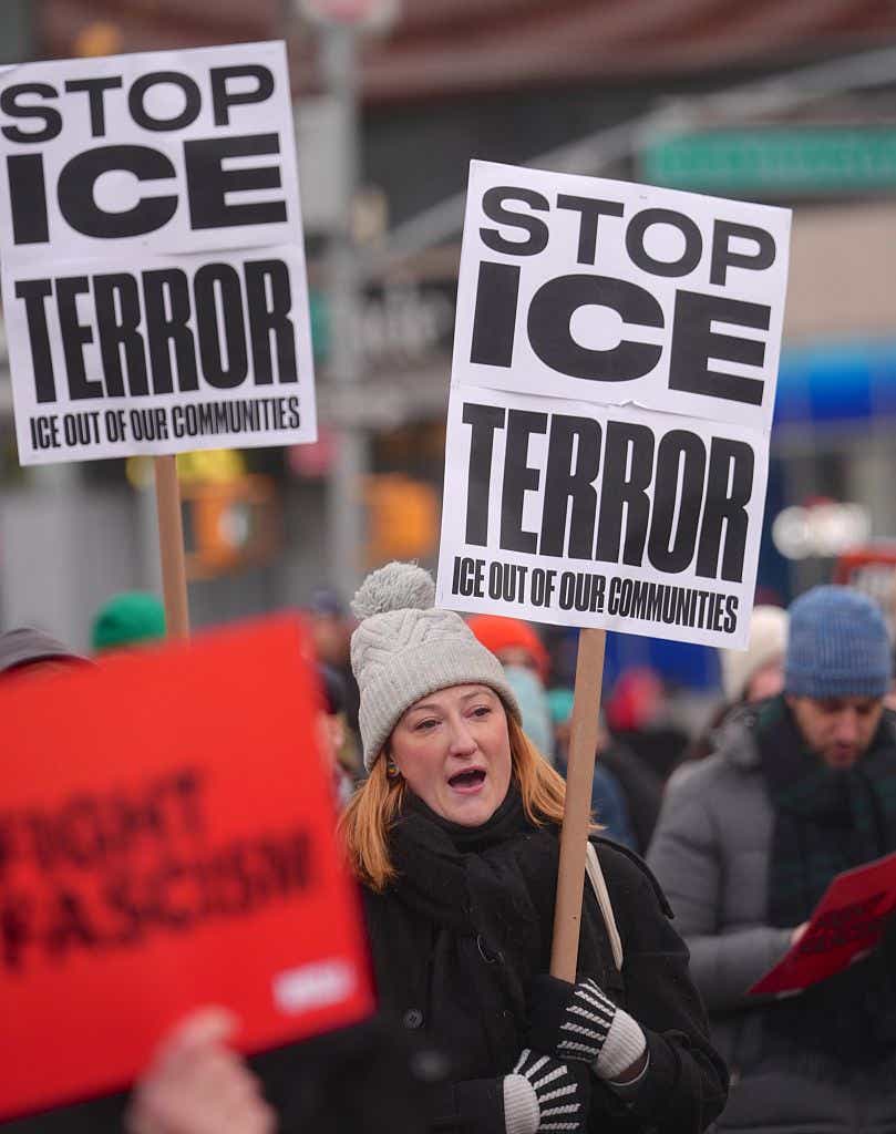 NEW YORK, UNITED STATES - JANUARY 24: Anti-ICE demonstrators gather in Union Square for an emergency rally and march against Immigration and Customs Enforcement. (Photo by Selcuk Acar/Anadolu via Getty Images)